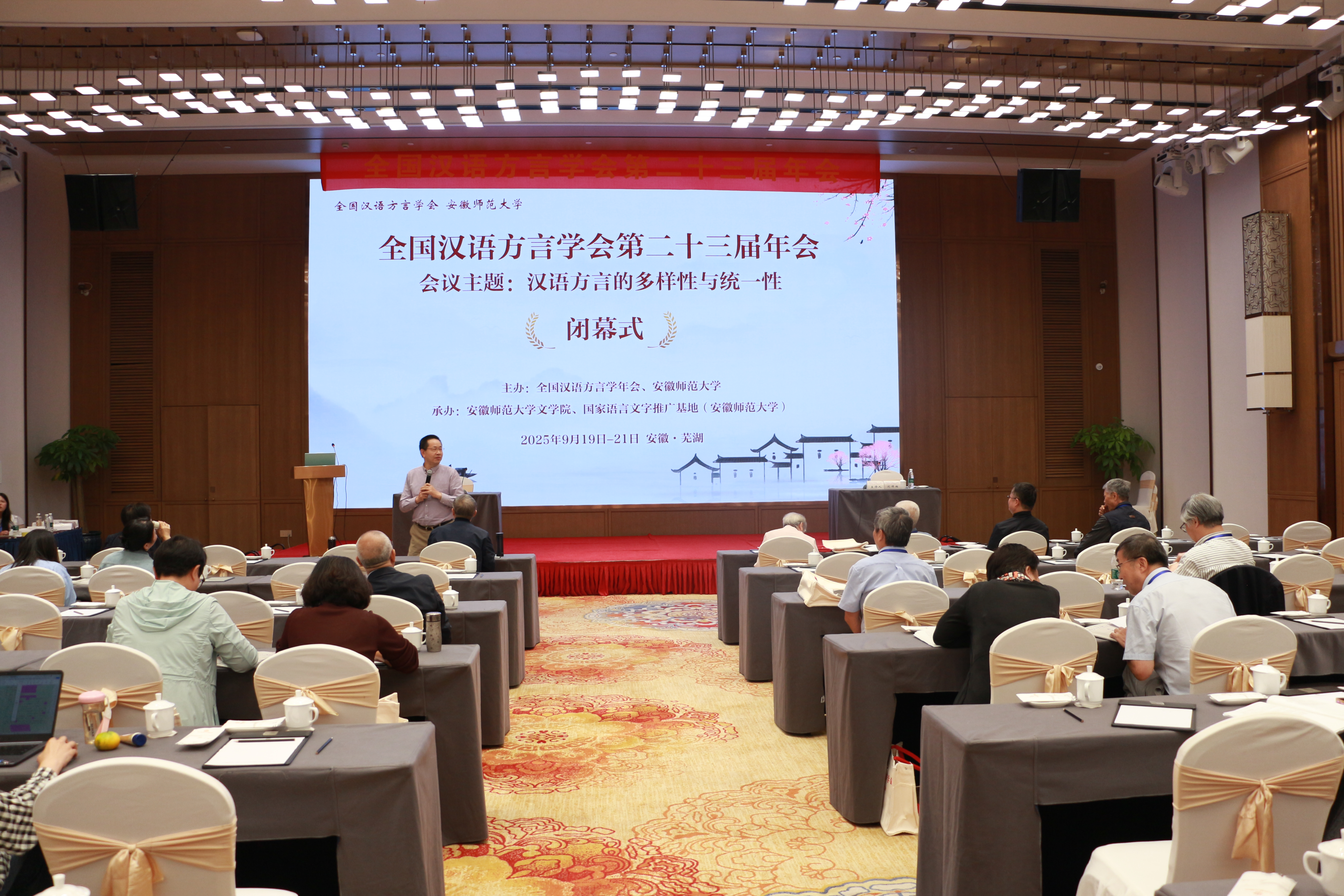 2025年9月19至21日,全国汉语方言学会第二十三届年会在安徽芜湖召开。会议由全国汉语方言学会和安徽师范大学主办,安徽师范大学文学院、国家语言文字推广基地(安徽师范大学)承办。来自全国各高校和科研院所的90余位专家学者齐聚江城,共襄学术盛会。