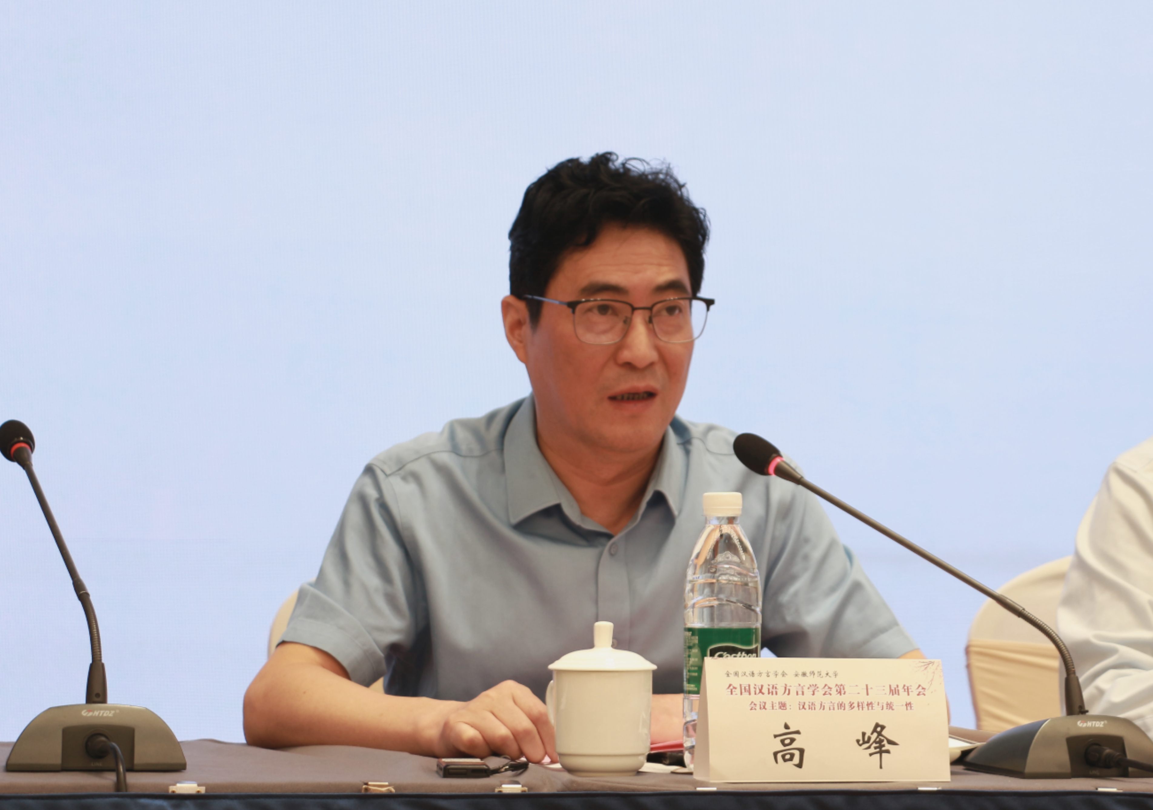 高峰副校长在致辞中介绍了安徽师范大学及文学院的基本情况及近年来的发展成果,指出安徽师范大学始终是安徽方言研究的重镇,60多年来在安徽方言研究与保护上取得了突出的成绩。