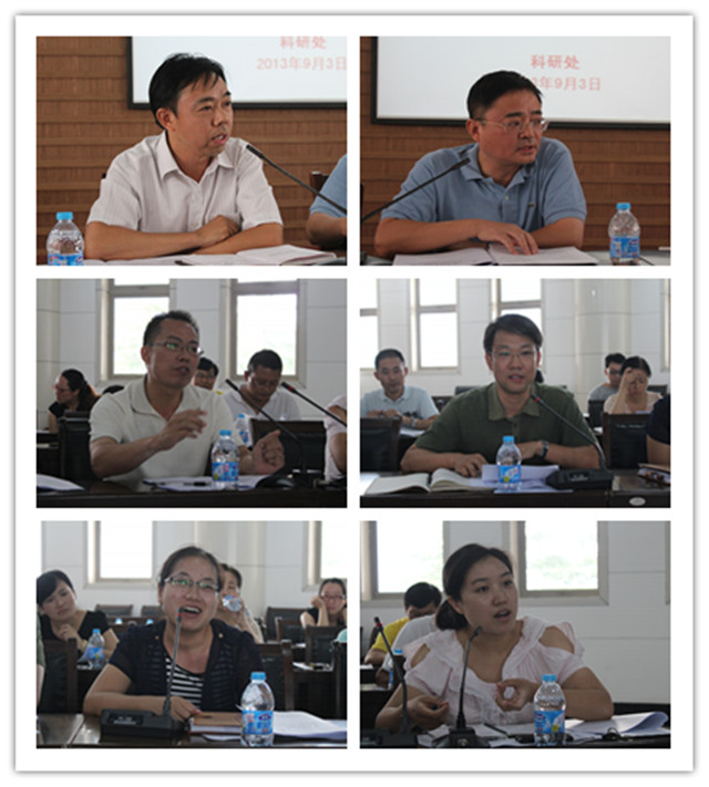 王绍武副校长充分肯定学校科研工作取得的成绩。他指出,广大教师在申报基金项目时,要选准方向,认真查阅文献,寻求专家指导,吸取专家意见。各学院一定要高度重视国家基金项目申报工作,关注“振兴计划”、国家社科基金后期资助、天元基金项目申报;认真梳理“十二五”规划指标完成情况,做好分析,出台措施;重视“协同创新中心”的培育、“高端科研平台”的建设、“哲学社会科学繁荣计划”的实施、青年教师的培养、工科科研项目的支持、特色优势领域的凝练等。他对今后科研工作提出三点要求:一要特别注重科研工作可持续发展。项目的实施要“按时”“按质”完成,人才的培养要关注青年教师,特别是优秀青年教师的引进;二要特别注重科研团队建设。通过“传帮带”建好“老中青”相结合的团队,把学校传统特色的研究延续下去;三要特别注重科研氛围的营造。把思想认识统一到“高水平科学研究支撑高质量高等教育”上来,充分认识高校教师承担的重大责任,营造科研氛围,让广大教师潜心学问。