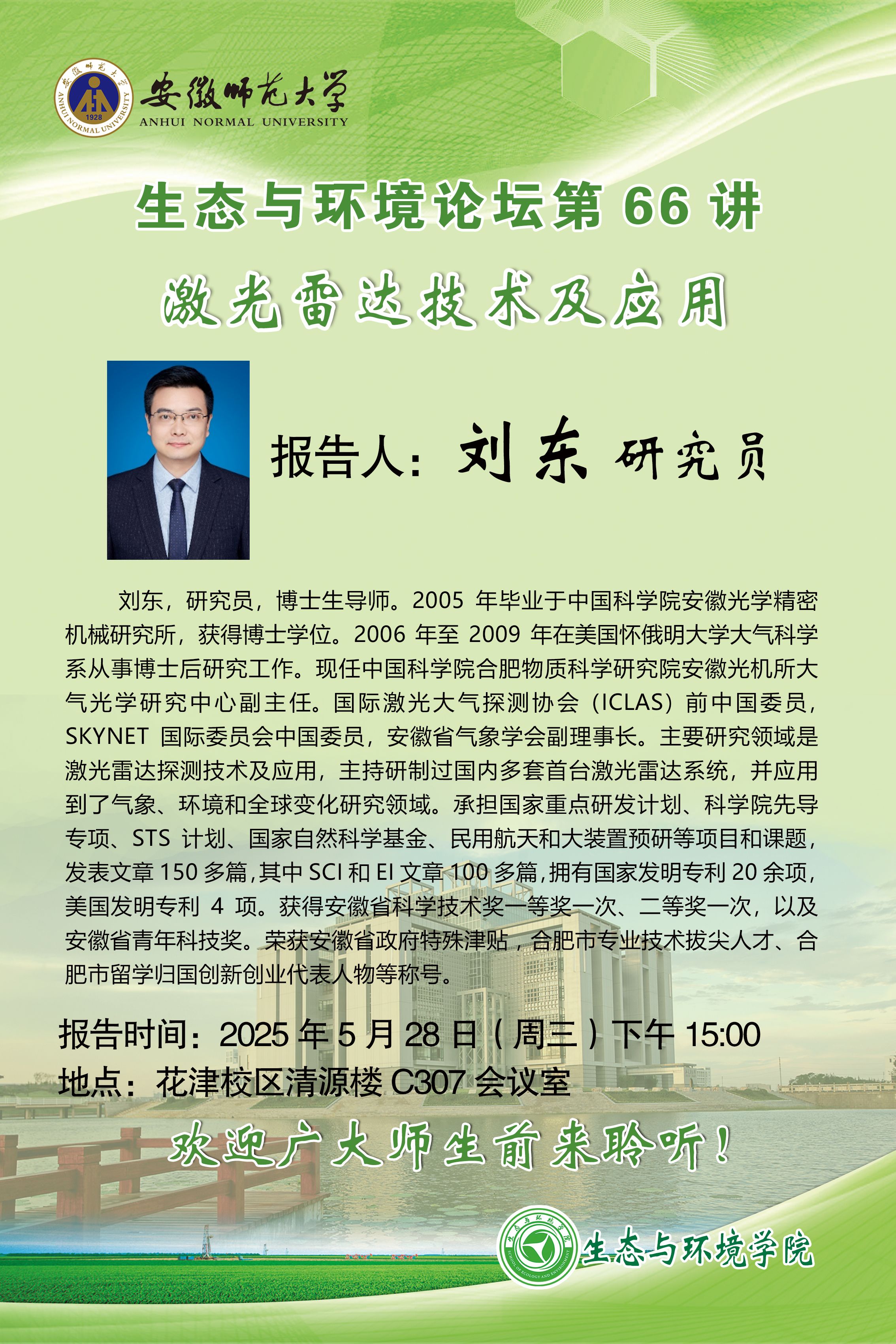 【学术预告】生态与环境论坛第66讲:激光雷达技术及应用