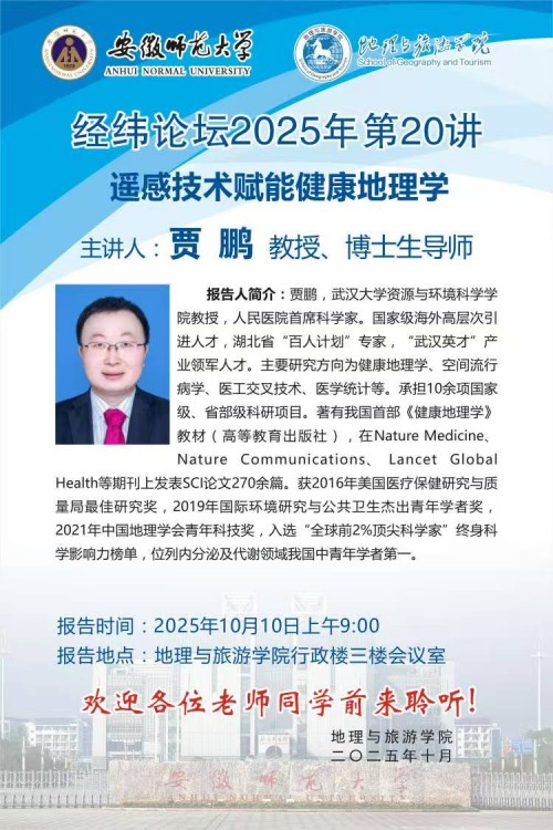 【学术预告】经纬论坛第86讲: 遥感技术赋能健康地理学