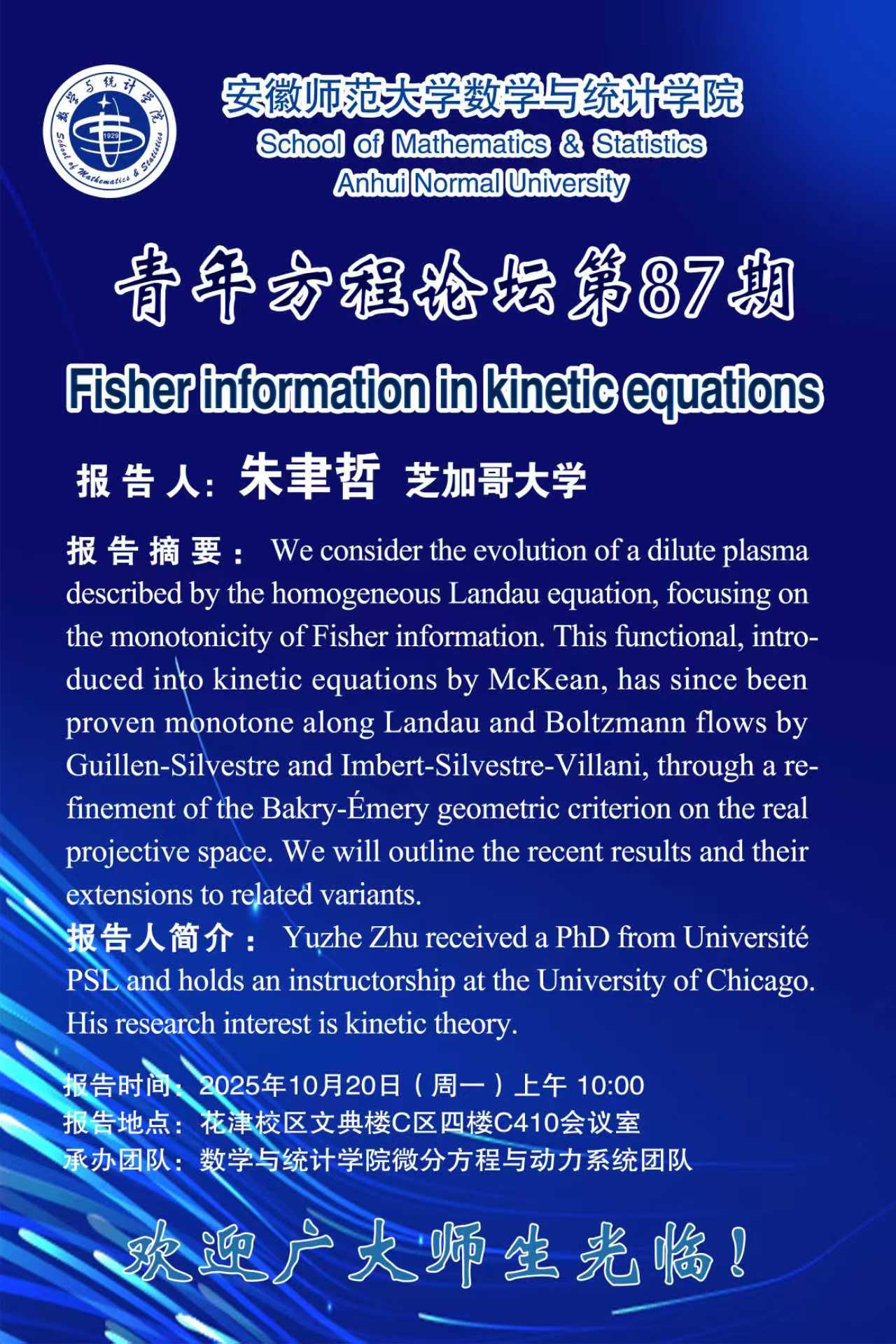 【学术预告】数统学院青年方程论坛第87期:Fisher information in kinetic equations