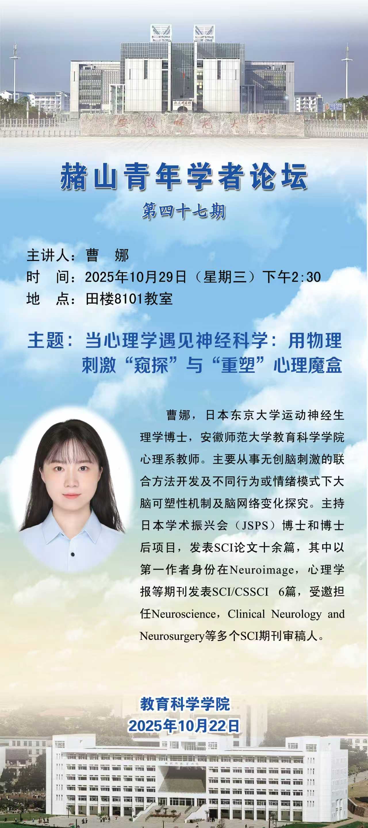 【学术预告】赭山青年学者论坛(第四十七期):当心理学遇见神经科学:用物理刺激“窥探”和“重塑”心理魔盒
