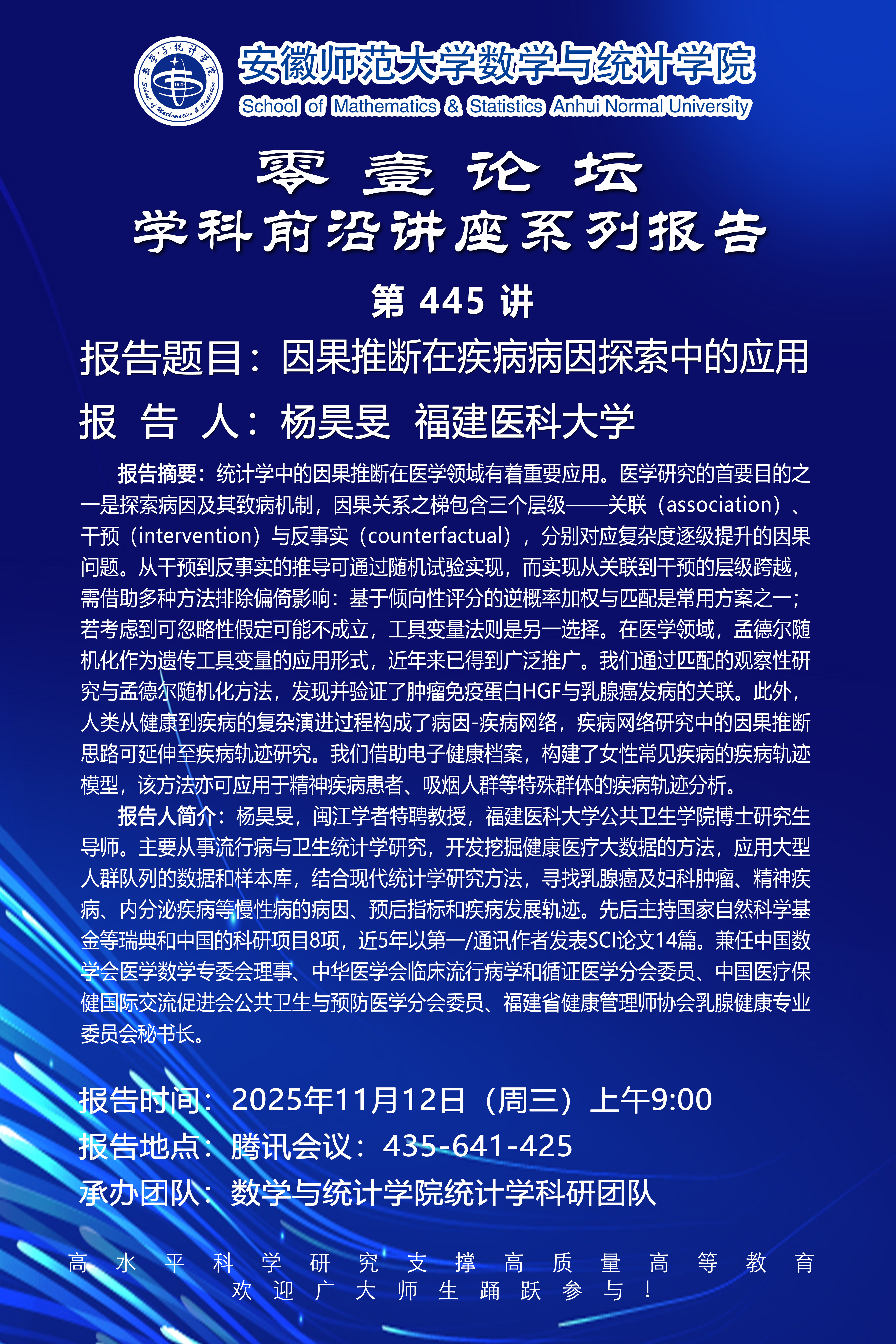 【学术预告】数统学院零壹论坛第445讲:因果推断在疾病病因探索中的应用