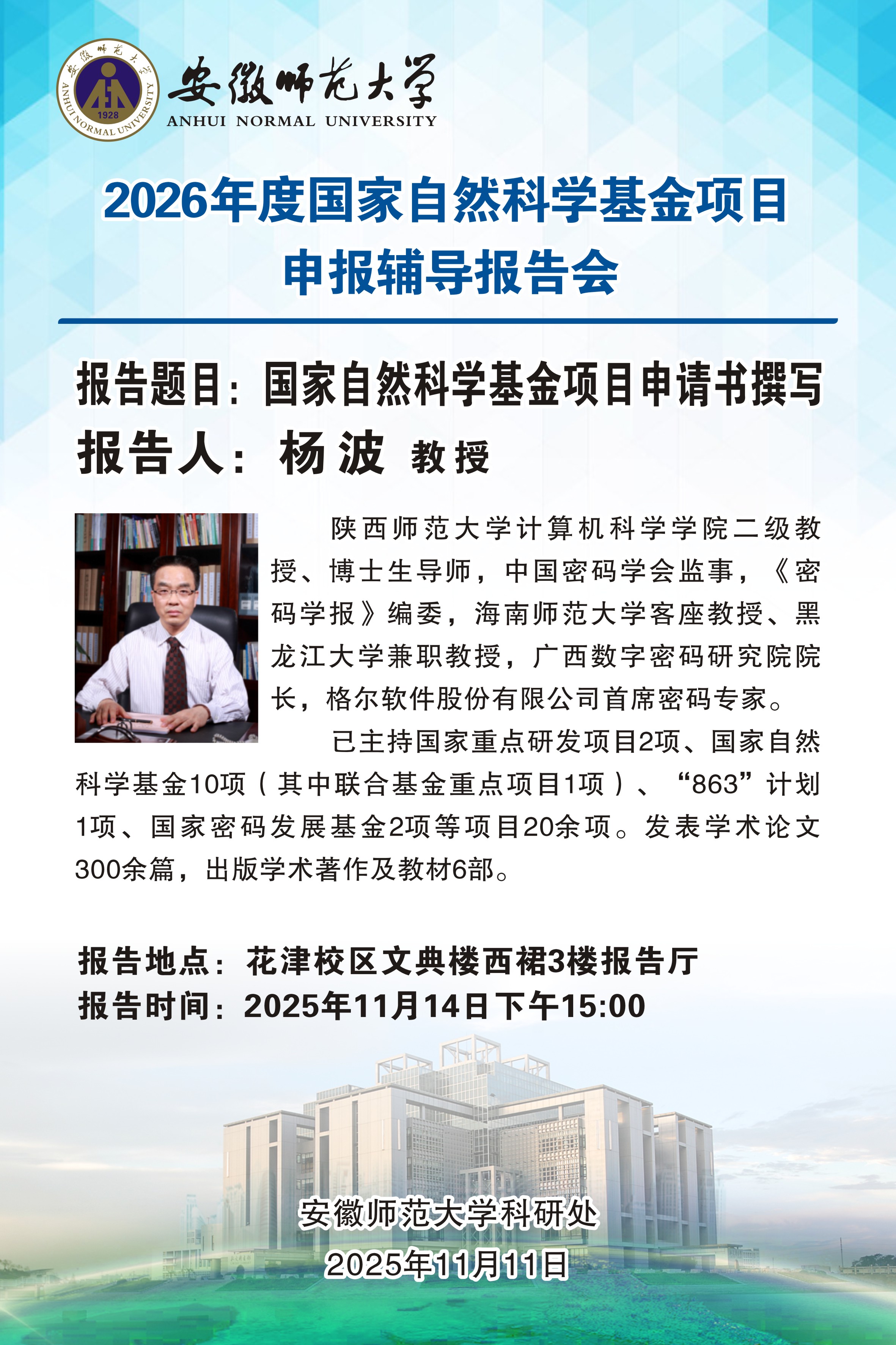 【学术预告】2026年度国家自然科学基金项目申报辅导报告会