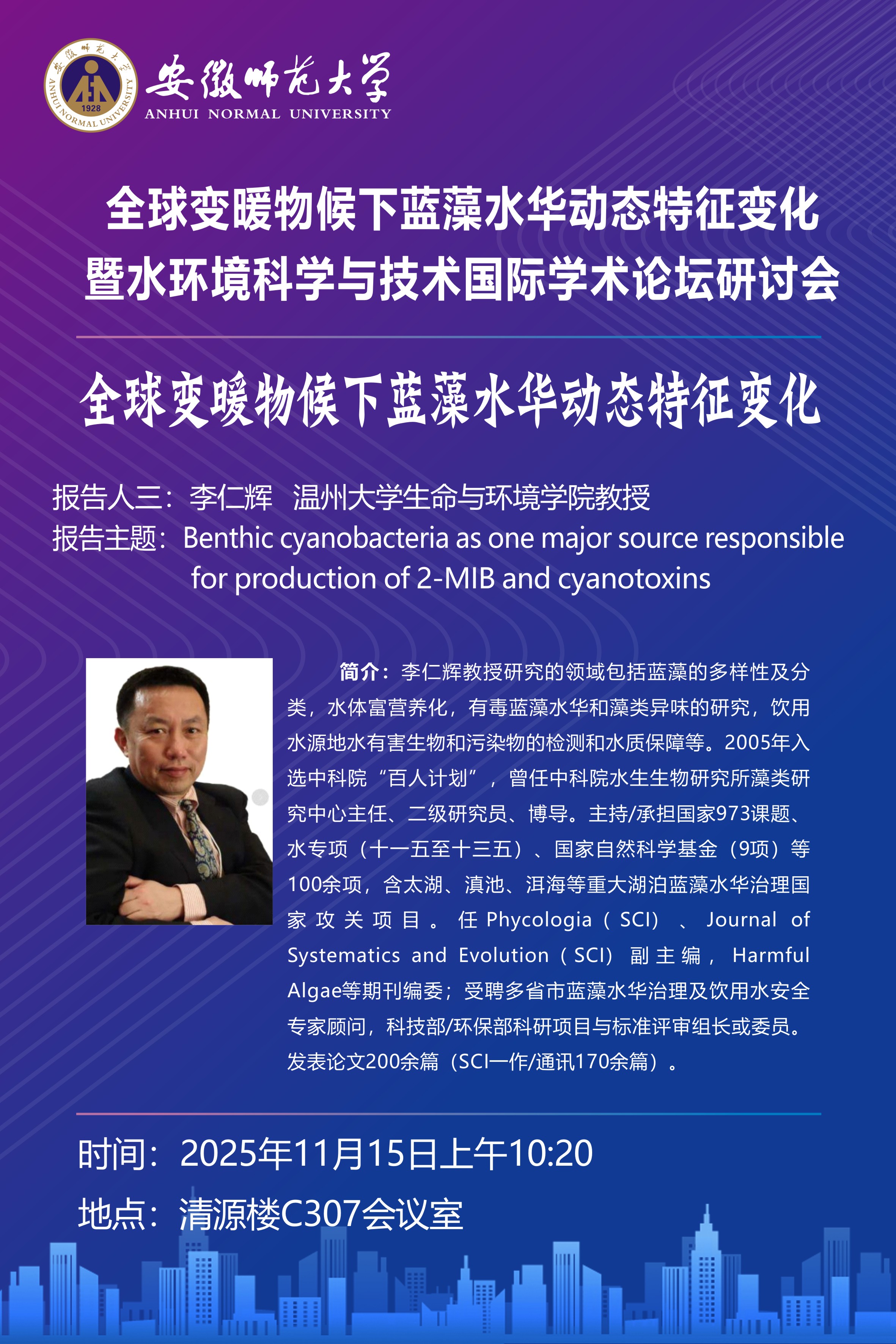 【学术预告】全球变暖物候下蓝藻水华动态特征变化暨水环境科学与技术国际学术论坛研讨会