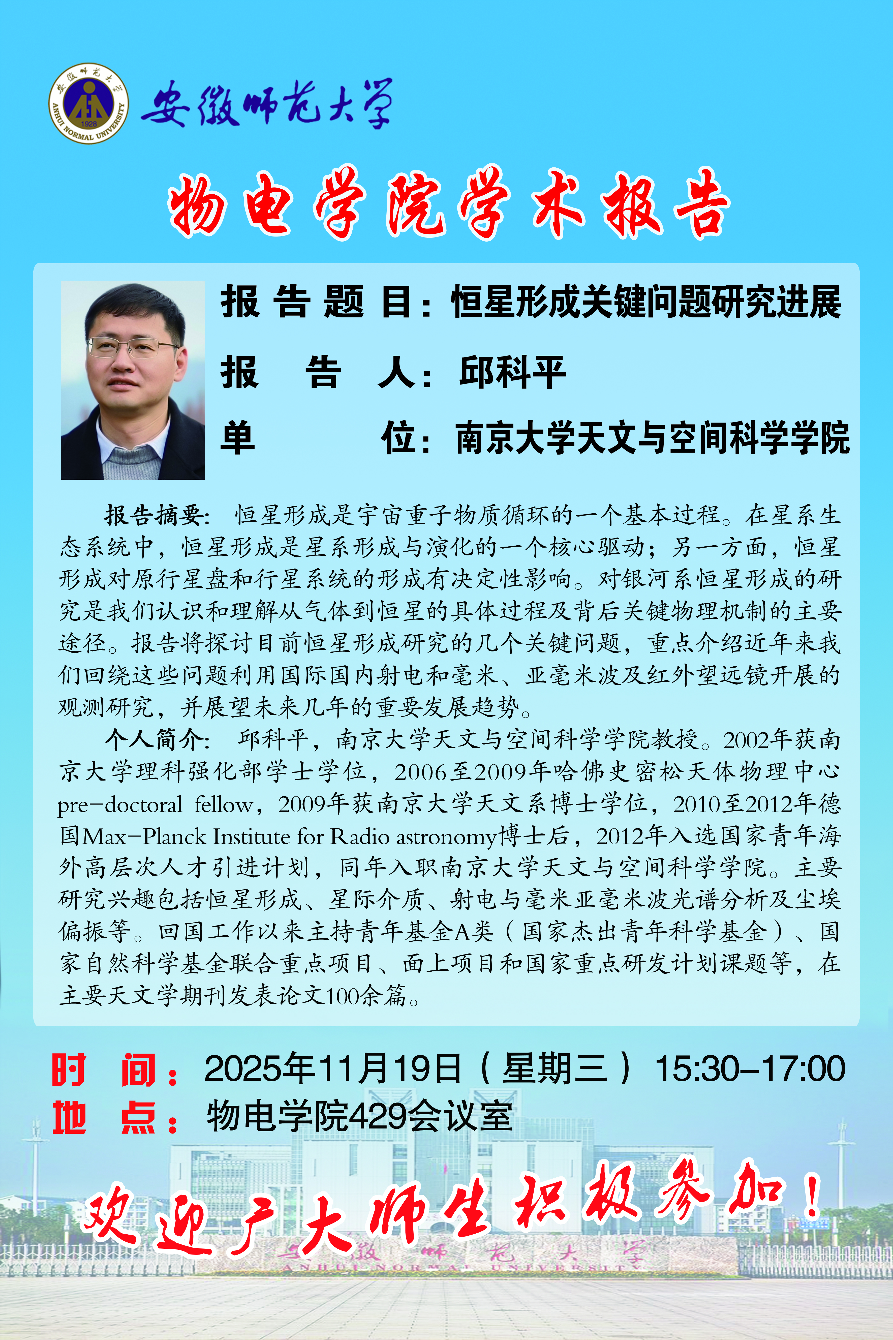 【学术预告】物电讲坛2025年第49期:恒星形成关键问题研究进展