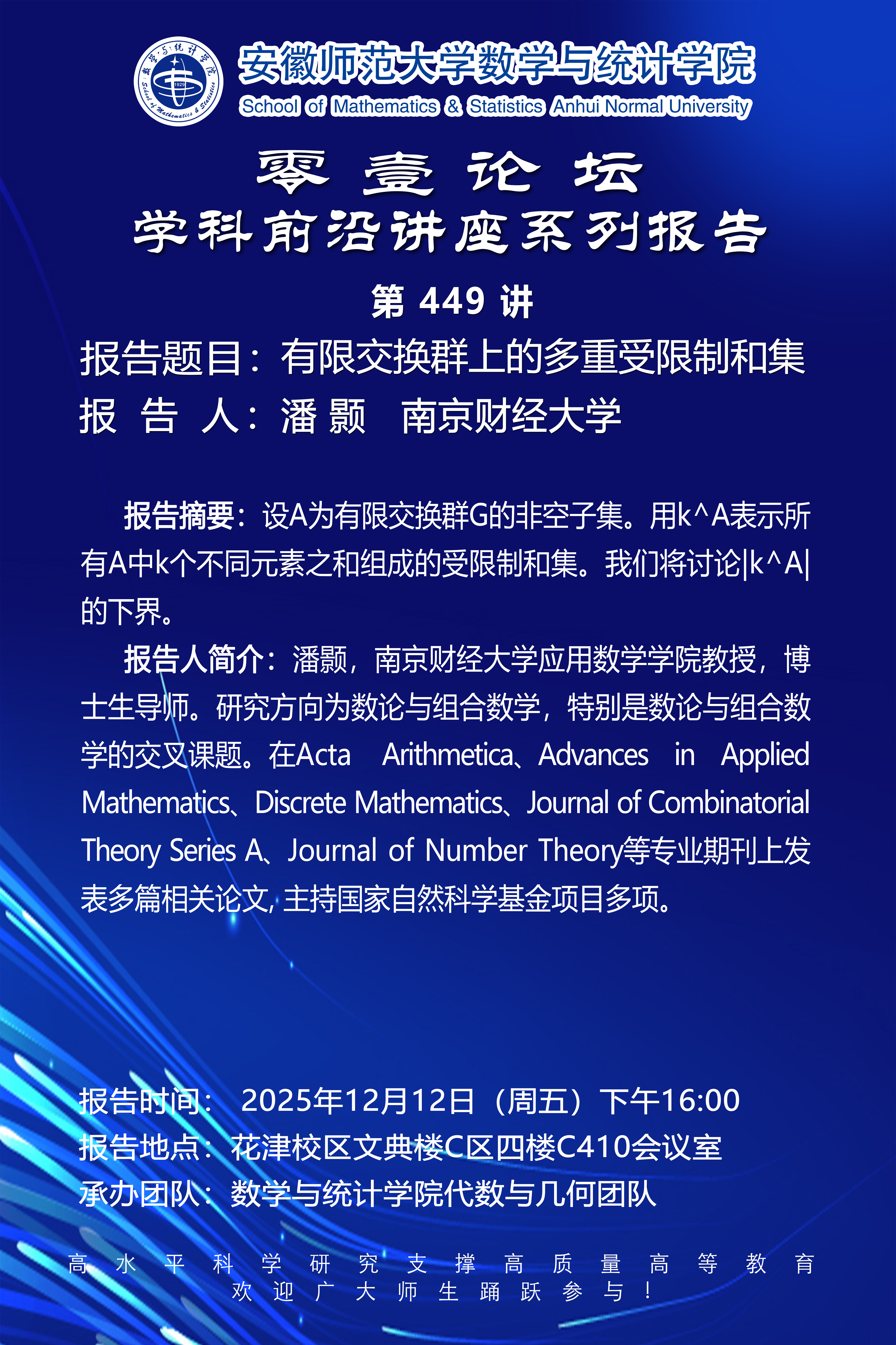 【学术预告】数统学院零壹论坛第449讲:有限交换群上的多重受限制和集