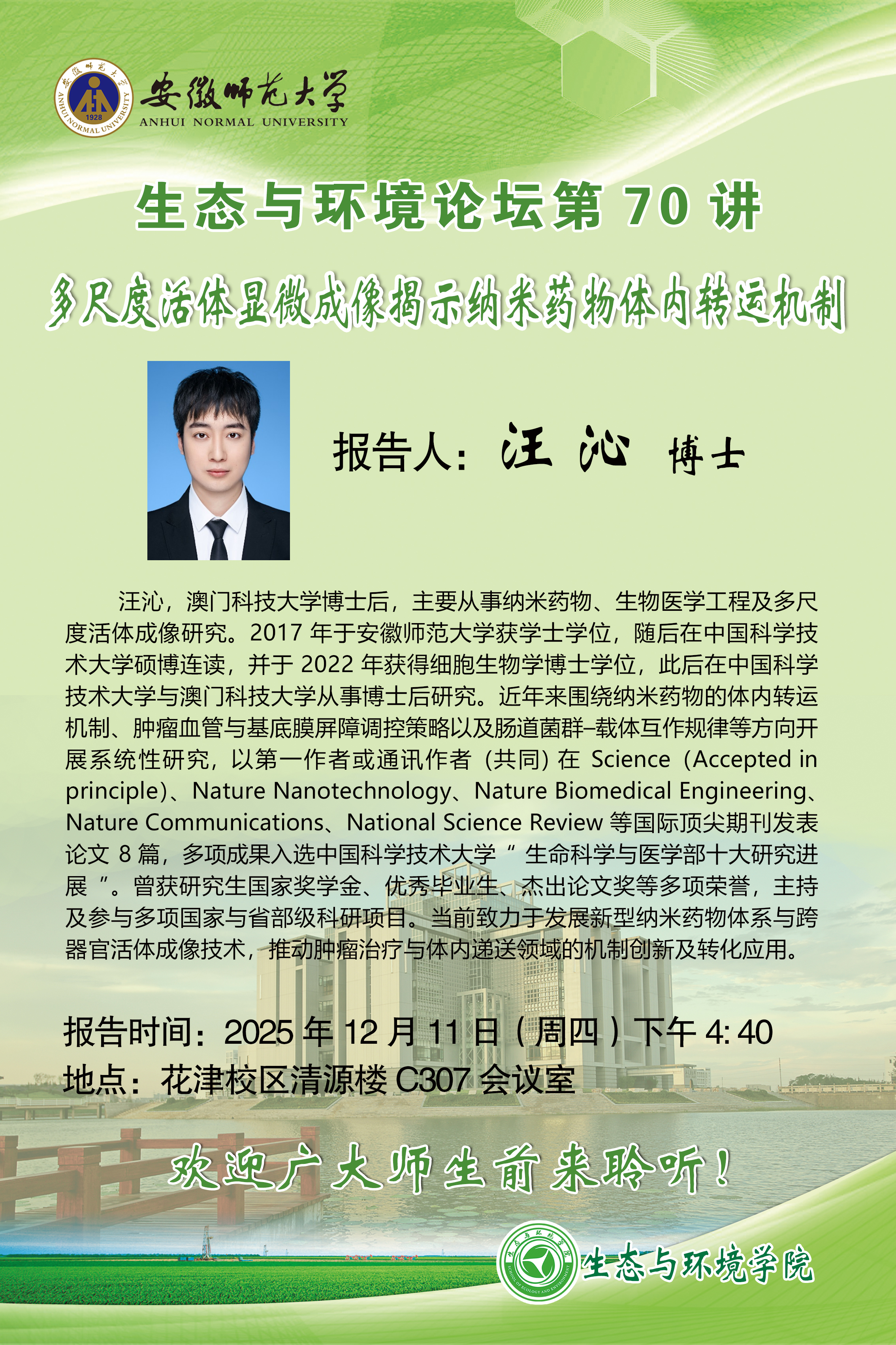 【学术预告】生态与环境论坛第70讲:多尺度活体显微成像揭示纳米药物体内转运机制