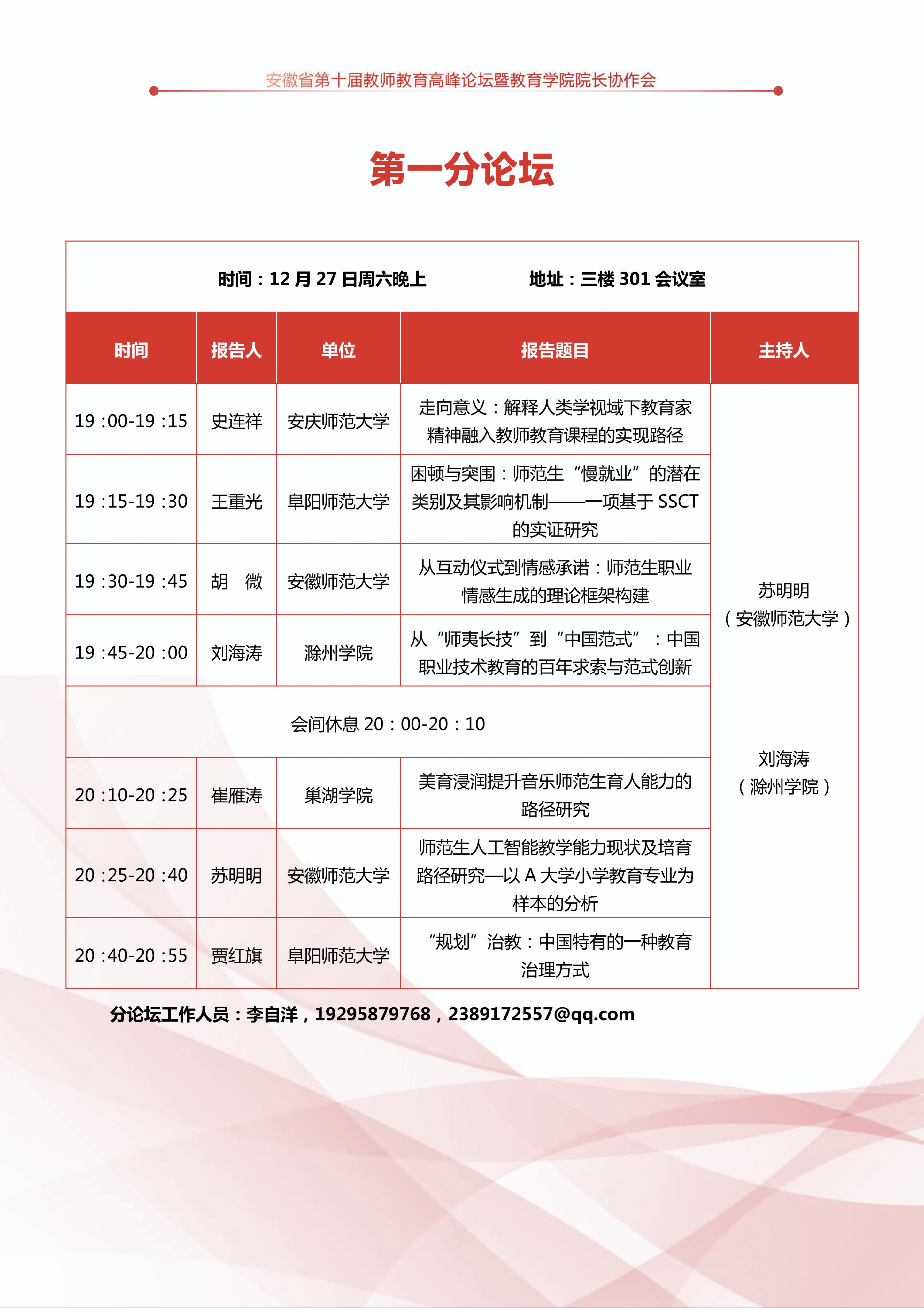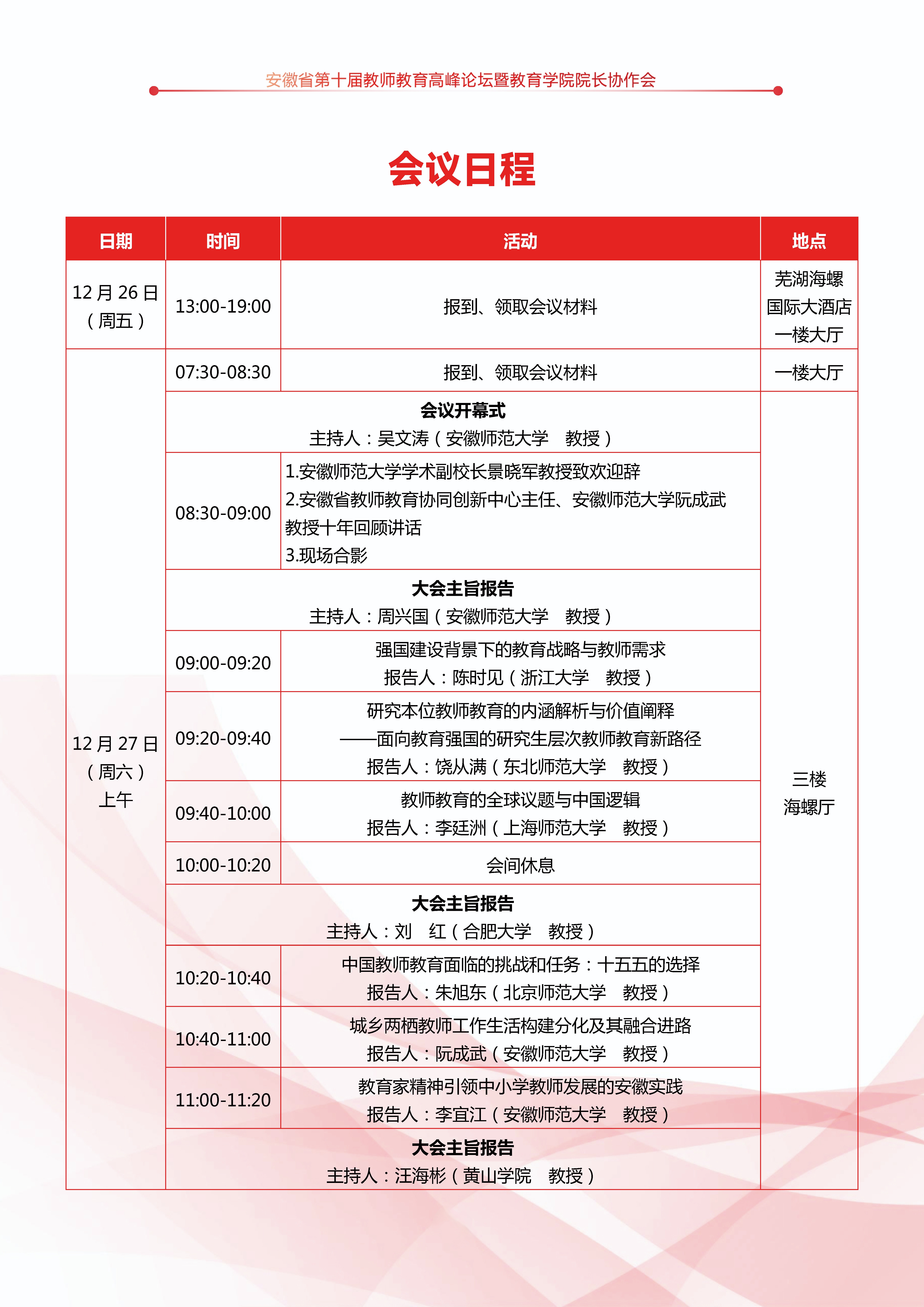 会议日程|安徽省第十届教师教育高峰论坛暨教育学院院长协作会