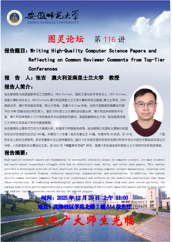 【学术预告】计信学院图灵论坛第116讲:Writing High-Quality Computer Science Papers and Reflecting on Common Reviewer Comments from Top-Tier Conferences