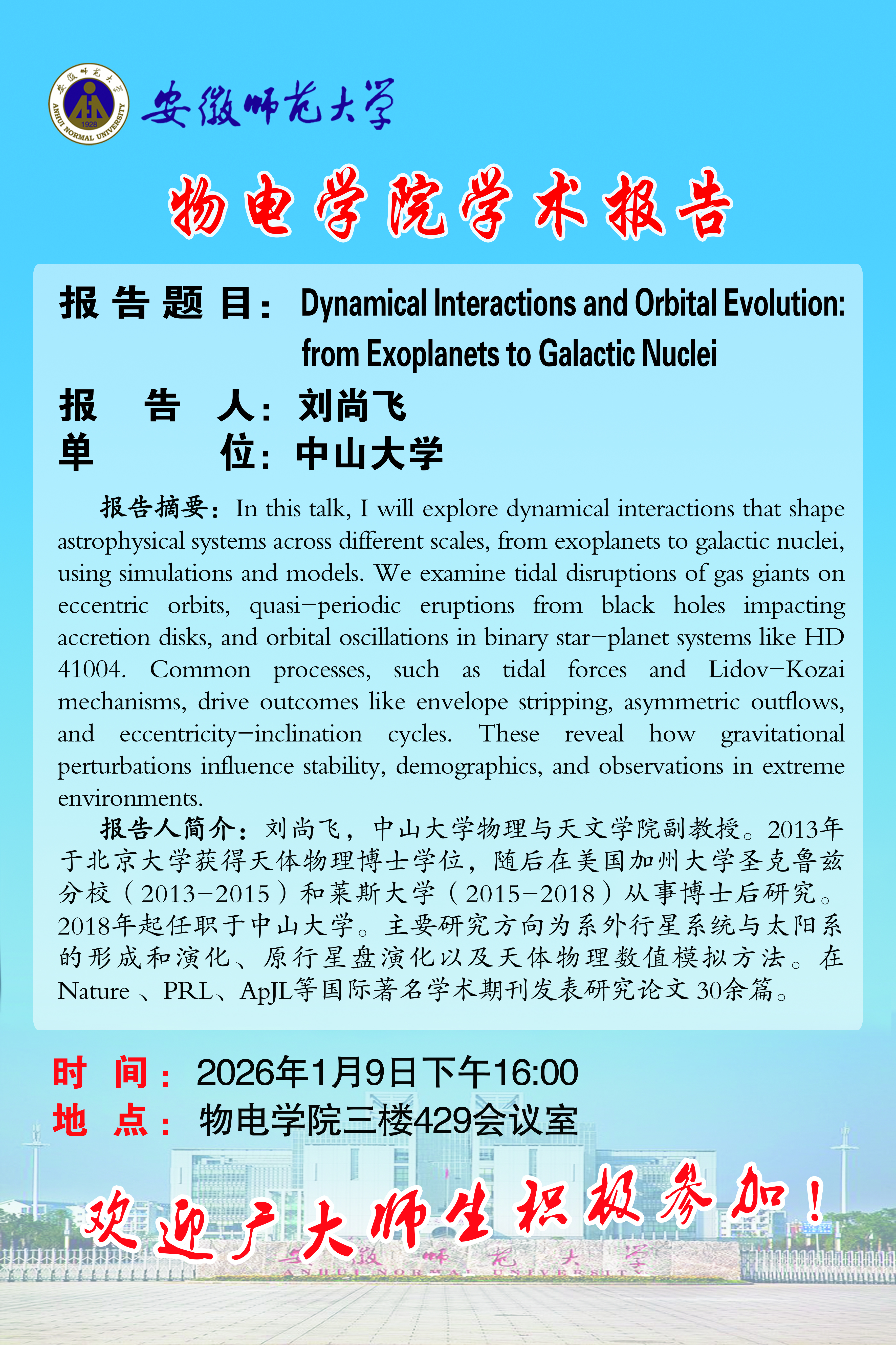 【学术预告】物电讲坛2026年第2期:Dynamical Interactions and Orbital Evolution: from Exoplanets to Galactic Nuclei