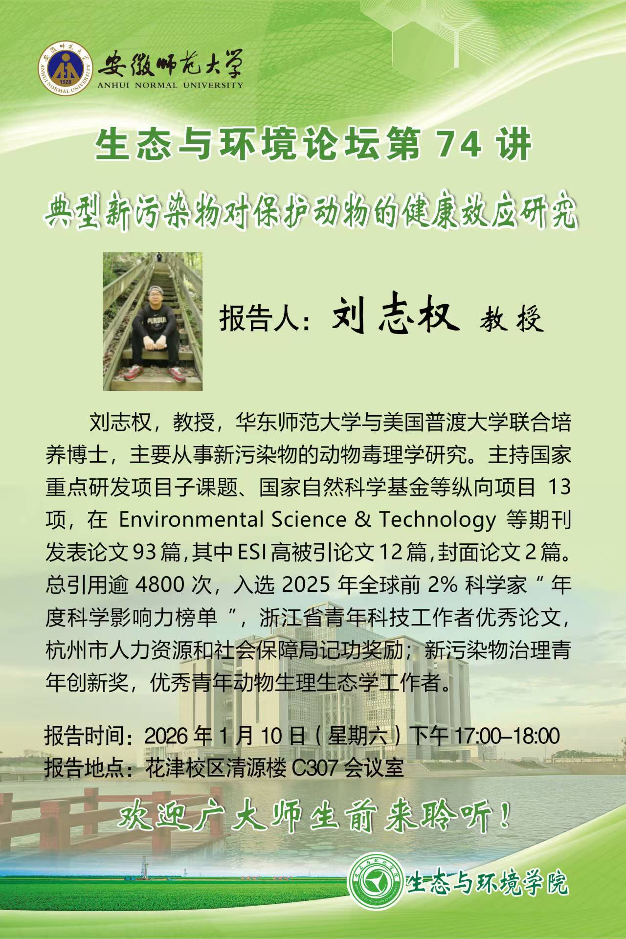 生态与环境论坛第74讲:典型新污染物对保护动物的健康效应研究
