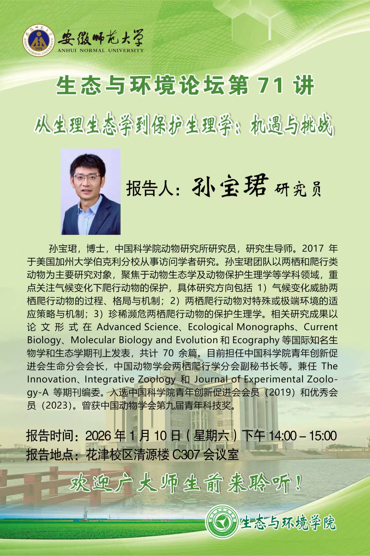 生态与环境论坛第71讲:从生理生态学到保护生理学:机遇与挑战