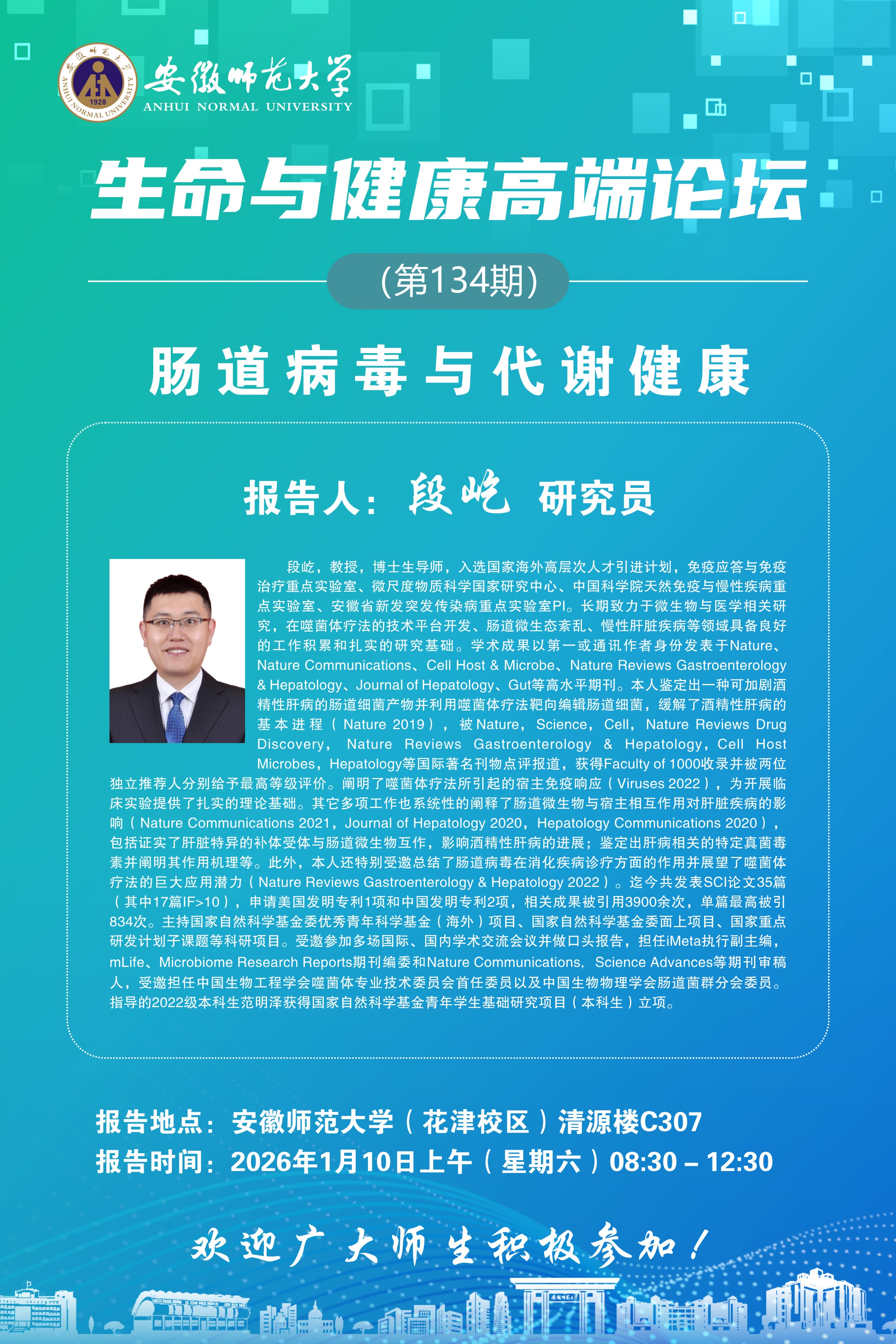 【学术预告】生命与健康高端论坛第134讲:肠道病毒与代谢健康