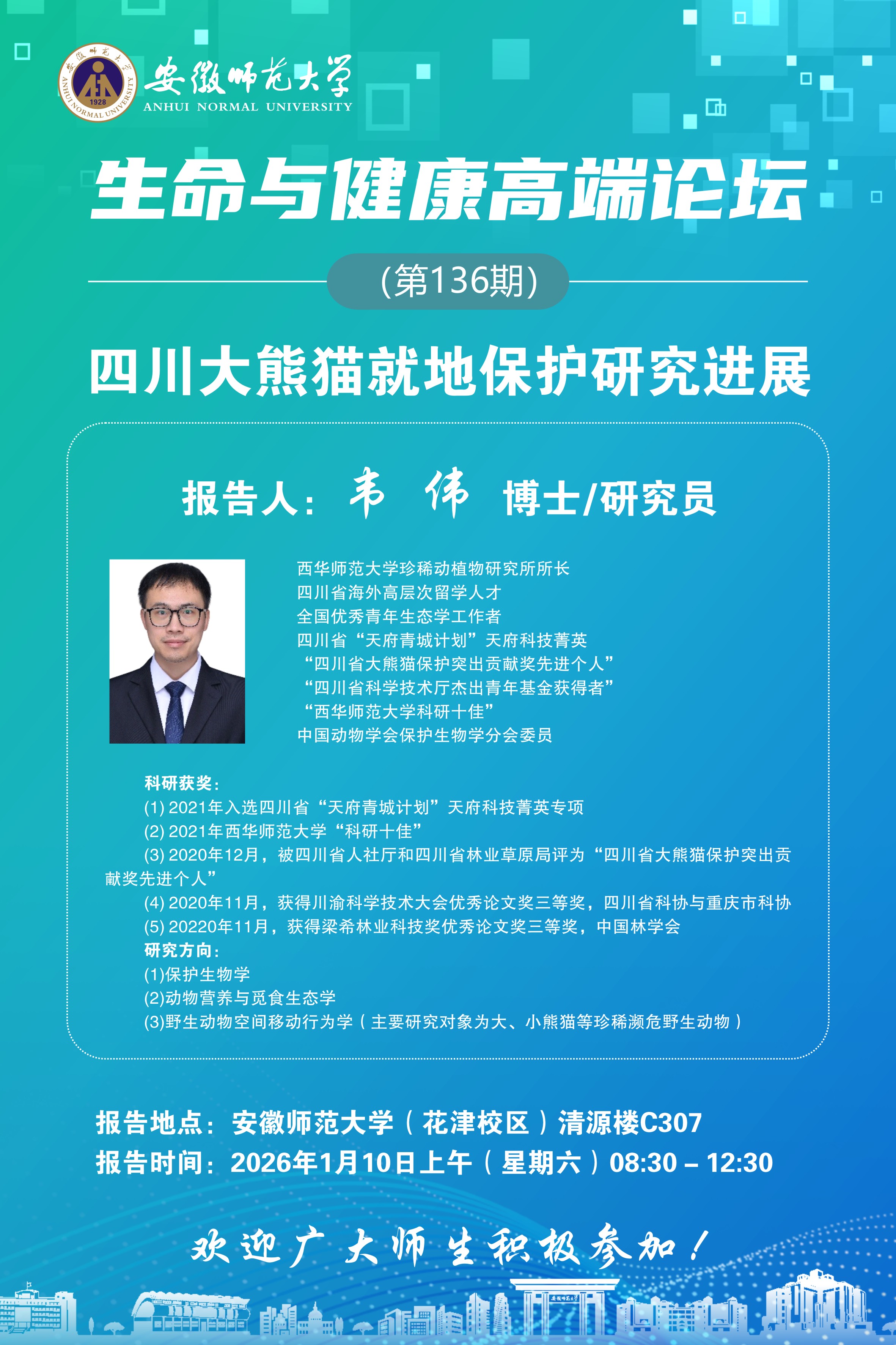 【学术预告】生命与健康高端论坛第136讲:四川大熊猫就地保护研究进展