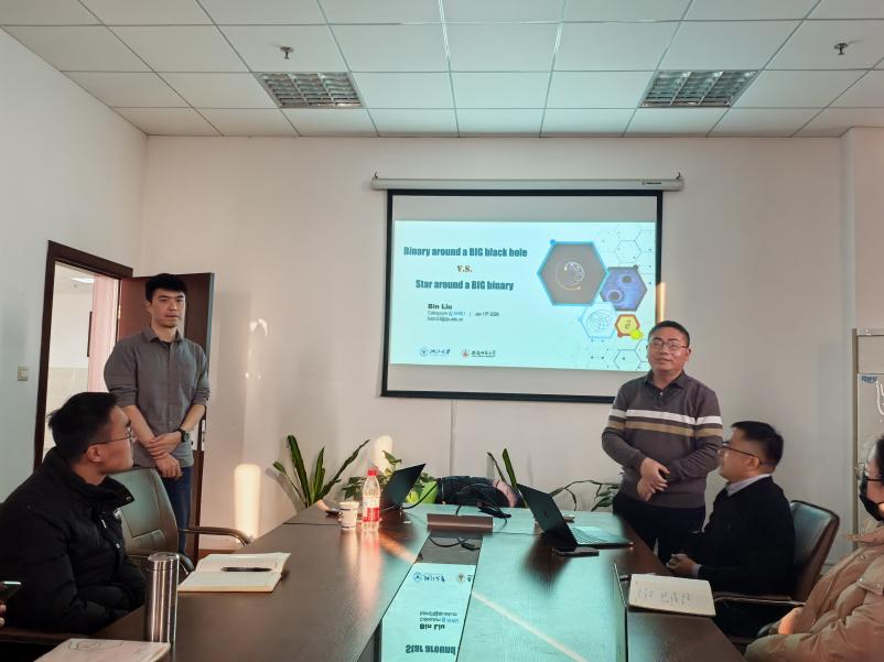 应物理与电子信息学院邀请,浙江大学研究员刘彬于1月13日来校进行学术交流,并做了题为《三体系统中的引力波事件》的学术报告。报告会在学院429会议室举行,会议由物电学院教授舒新文主持,物电学院相关师生参加了本次报告会。
