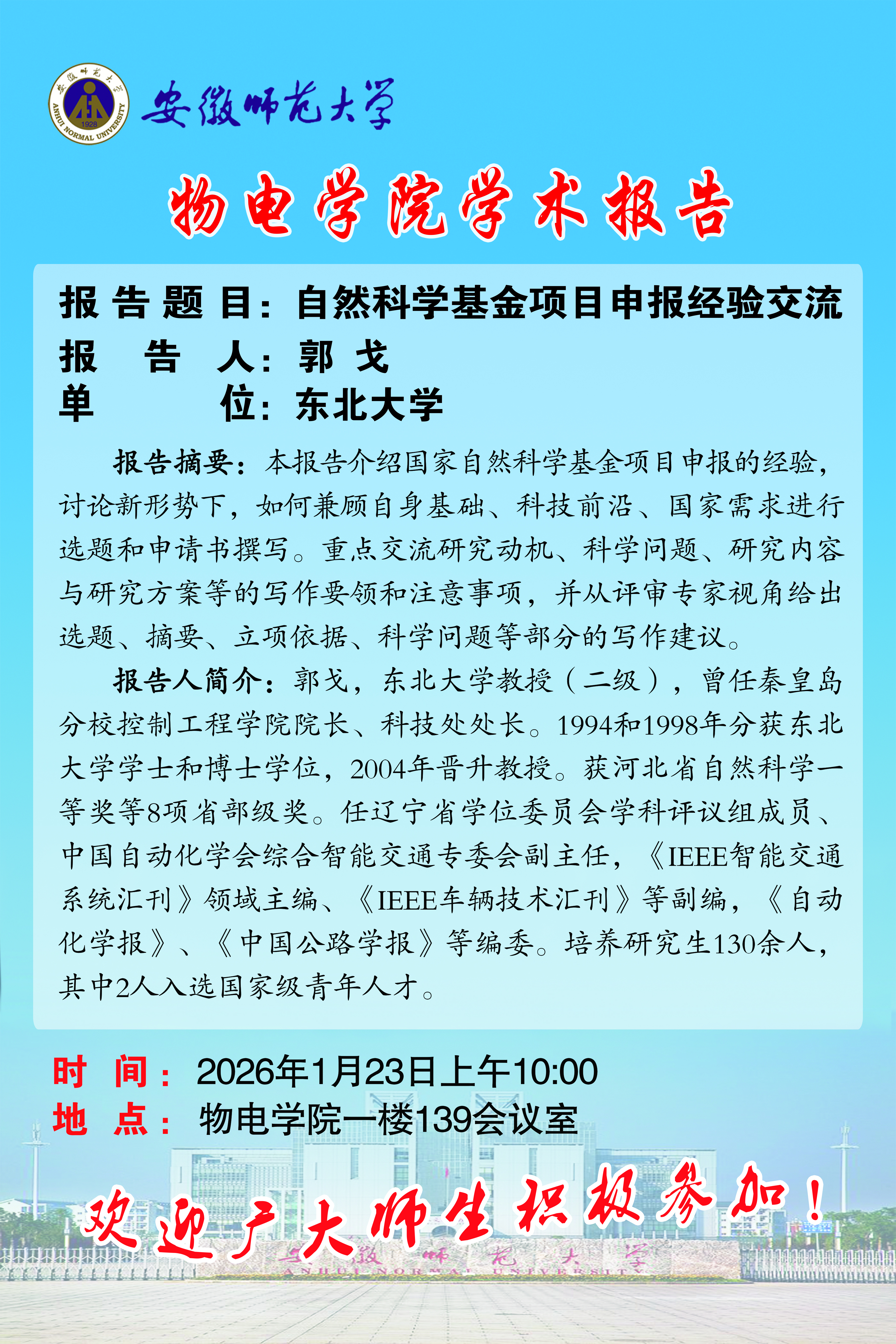 【学术预告】物电讲坛2026年第5期:自然科学基金项目申报经验交流