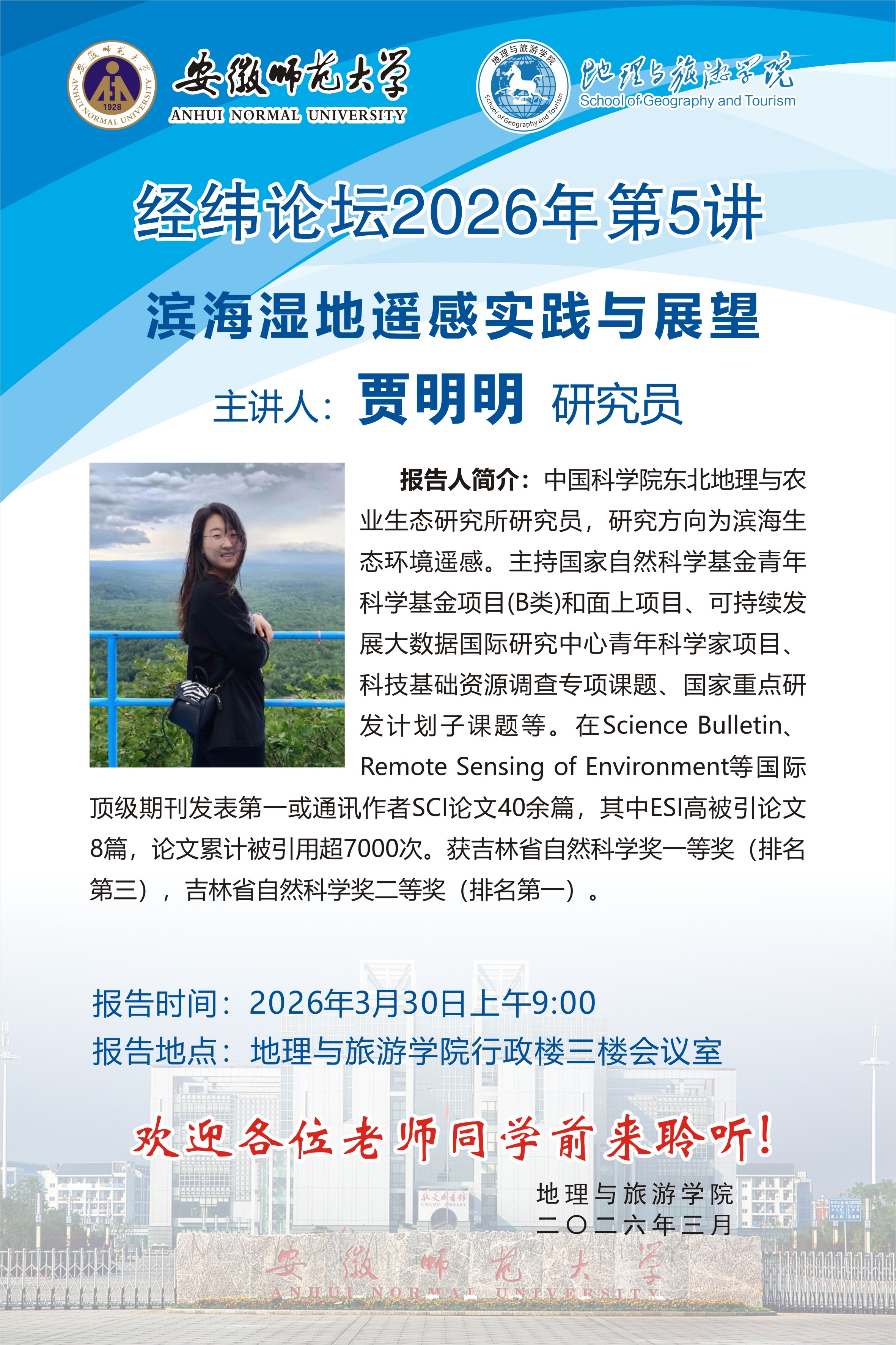 【学术预告】经纬论坛第101讲: 滨海湿地遥感实践与展望