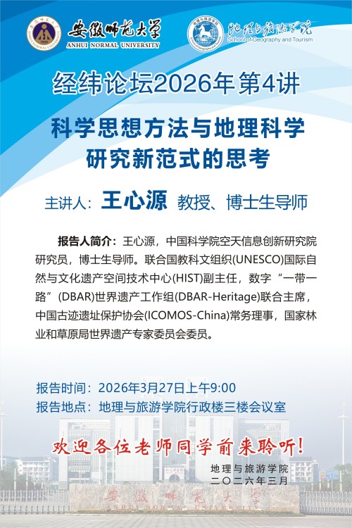 【学术预告】经纬论坛第100讲: 科学思想方法与地理科学研究新范式的思考