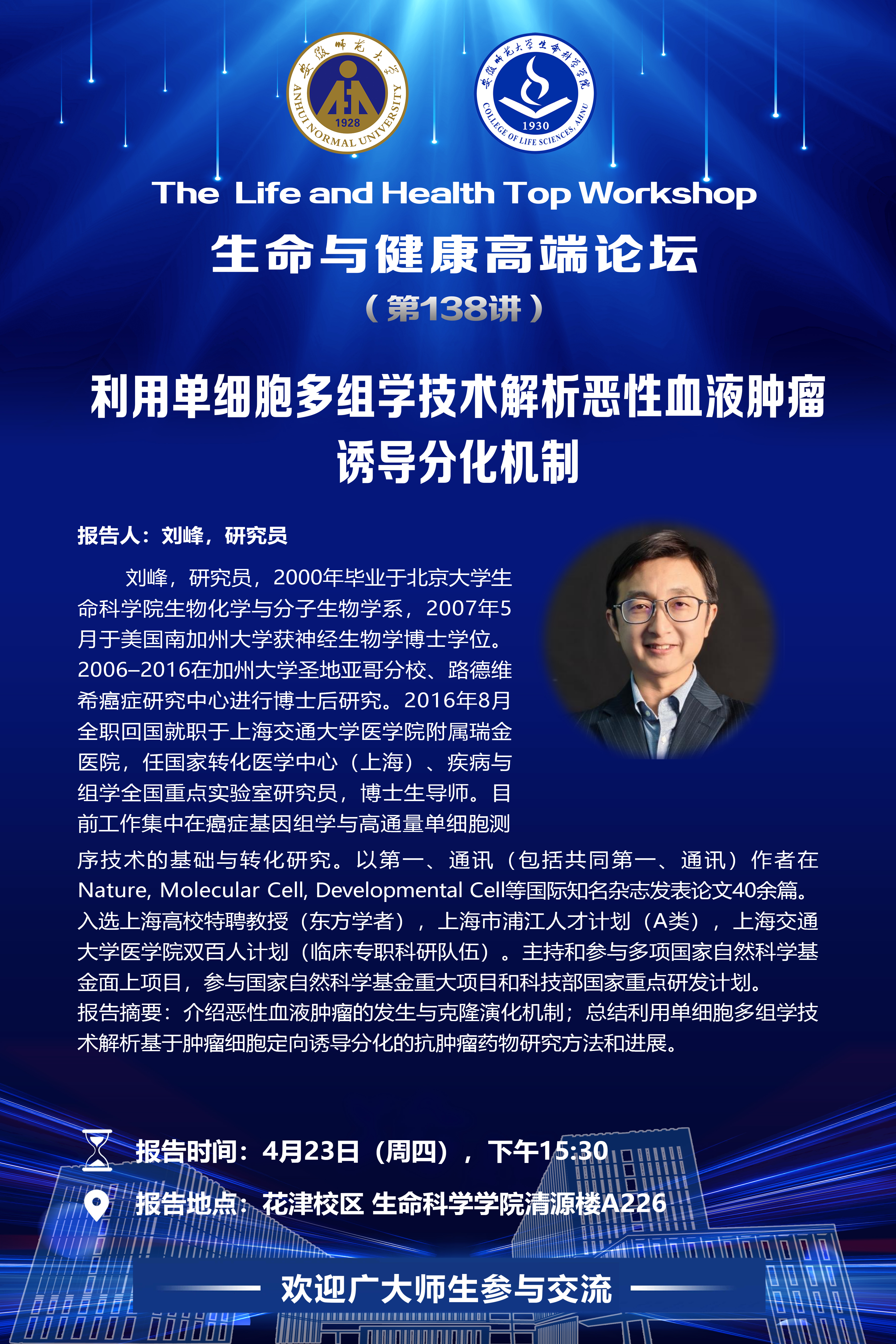 【学术预告】生命与健康高端论坛第138讲:利用单细胞多组学技术解析恶性血液肿瘤诱导分化机制