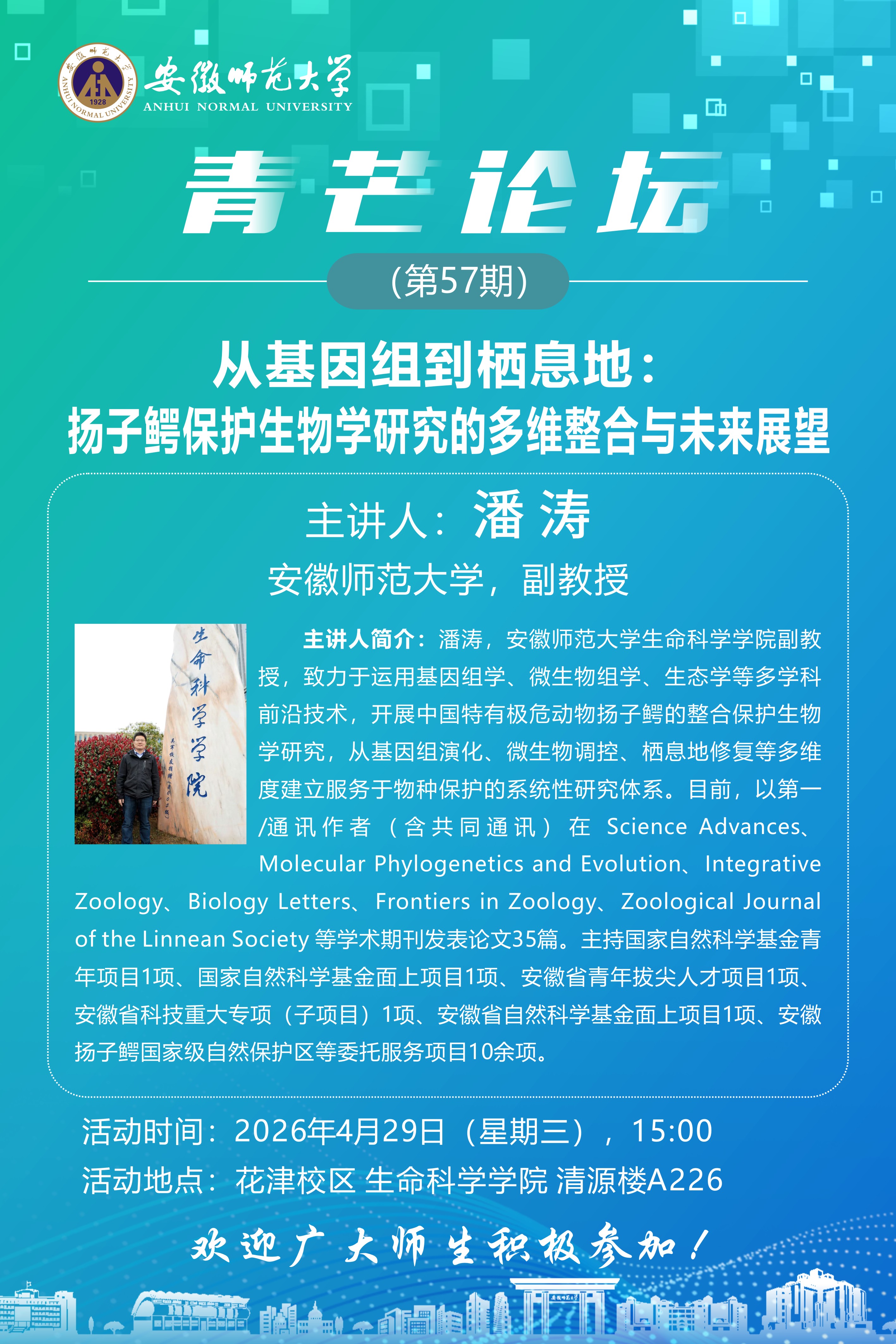 【学术预告】青芒论坛第57讲:从基因组到栖息地:扬子鳄保护生物学研究的多维整合与未来展望