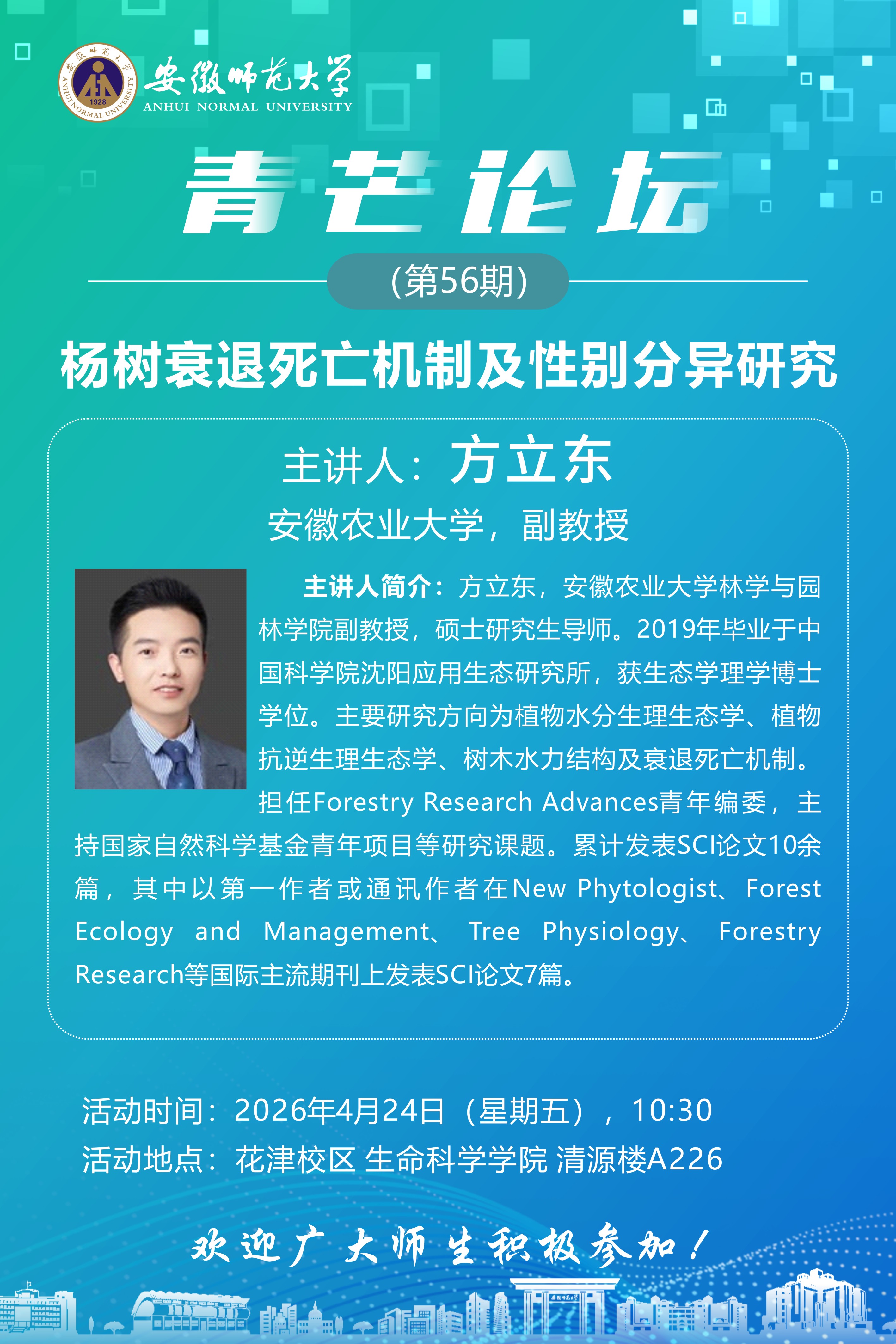 【学术预告】青芒论坛第56讲:杨树衰退死亡机制及性别分异研究