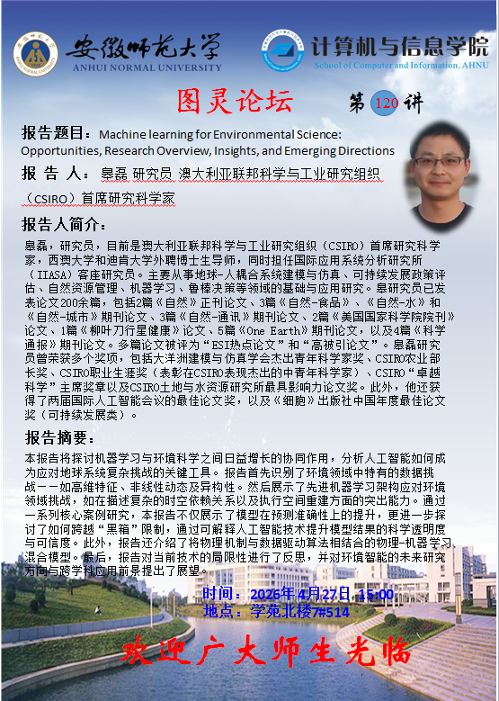 【学术预告】计信学院图灵论坛第120讲:Machine learning for Environmental Science: Opportunities, Research Overview, Insights, and Emerging Directions