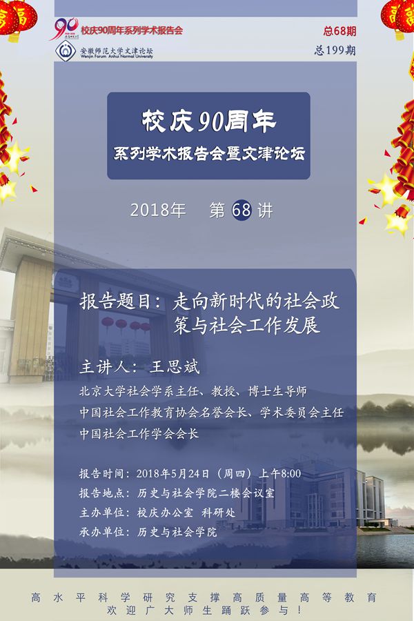 【校庆系列学术报告暨文津论坛】第68讲:走向新时代的社会政策与社会工作发展