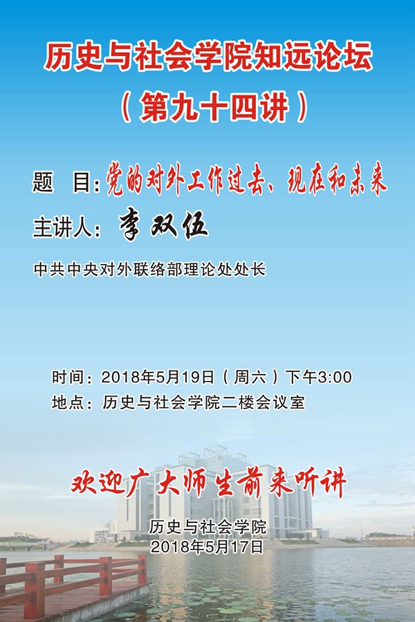【迎校庆·历史与社会学院知远论坛】第九十四讲:党的对外工作过去、现在和未来